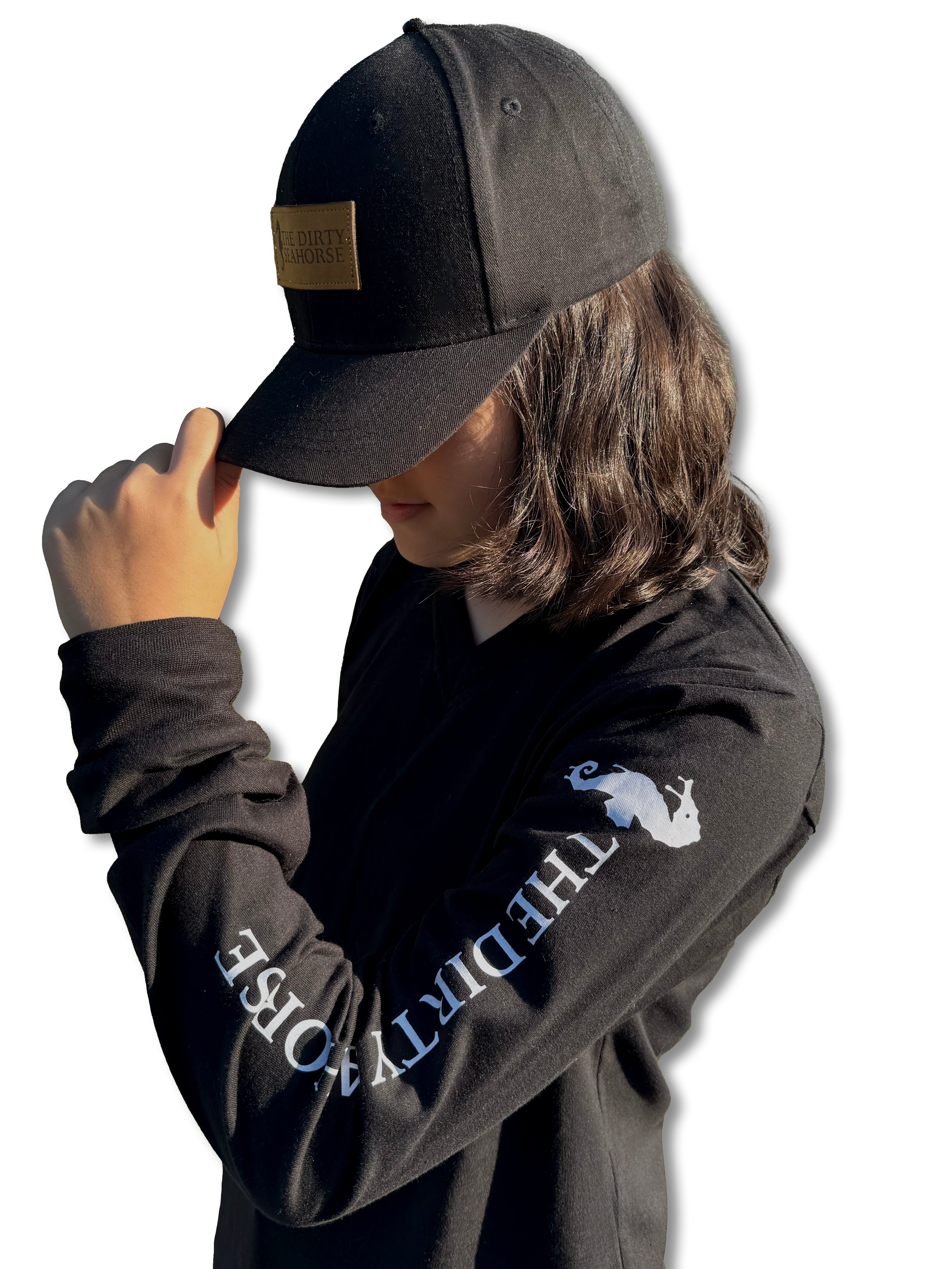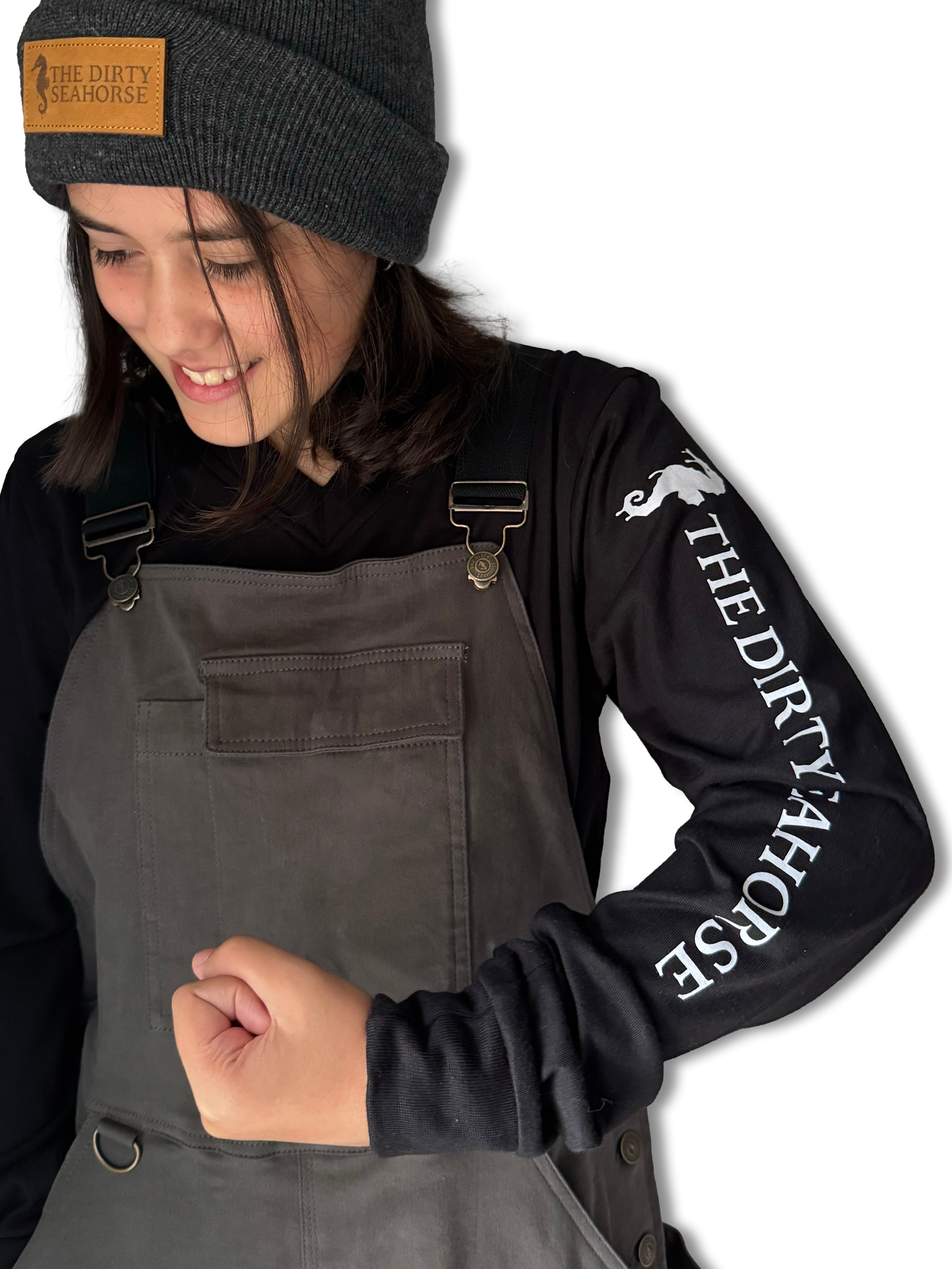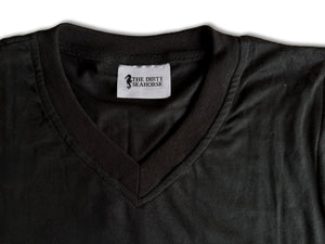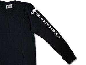 The Dirty Seahorse Long-Sleeve Work T-shirt is built for comfort and style all day long. Crafted from 100% soft, breathable cotton, it keeps you comfortable while you work and looks great off the job too. Featuring a classic V-neck, ribbed cuffs for a secure fit, and a bold white print running down the left sleeve, this long-sleeve t-shirt delivers function with a modern edge. Available in black with a crisp white print.