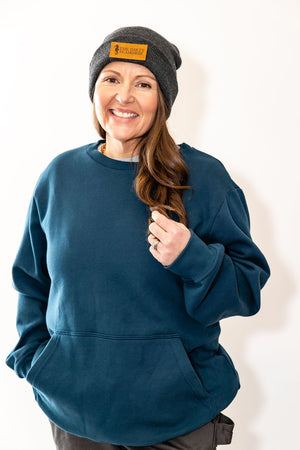 Our crew neck sweaters, perfect for staying cozy and warm all winter long! With built in thumb holes to keep the cold out and our secret pocket on the inside of the kangaroo pocket we've got the perfect combination of durability and comfort.